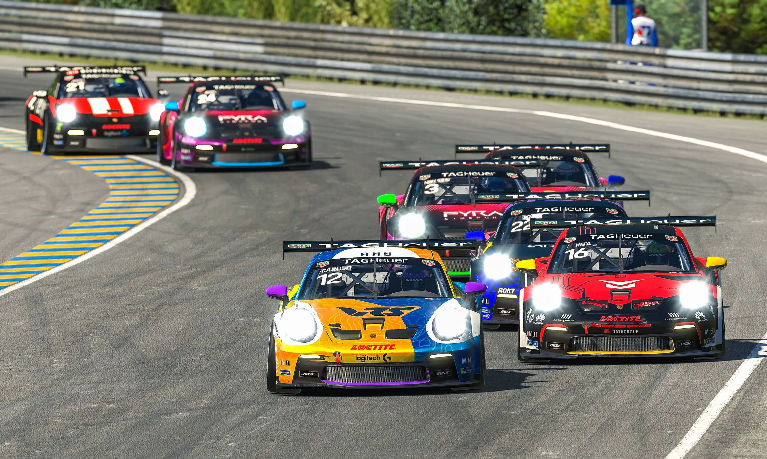 Slipstream duels and numerous lead changes marked the ninth round of the Porsche TAG Heuer Esports Supercup at Le Mans. On the long straights of the circuit known from the 24-hour race, Sebastian Job tackled the most skilfully in the sprint: The Briton from the Oracle Red Bull Racing Esports team secured victory. The main race was won by Frenchman Yohann Harth in the virtual Porsche 911 GT3 Cup of the Apex Racing Team. Championship leader Jordan Caruso lost a large part of his lead: The Australian from the Altus Esports team finished the sprint in seventh place and scored only two points in the main race after a collision.