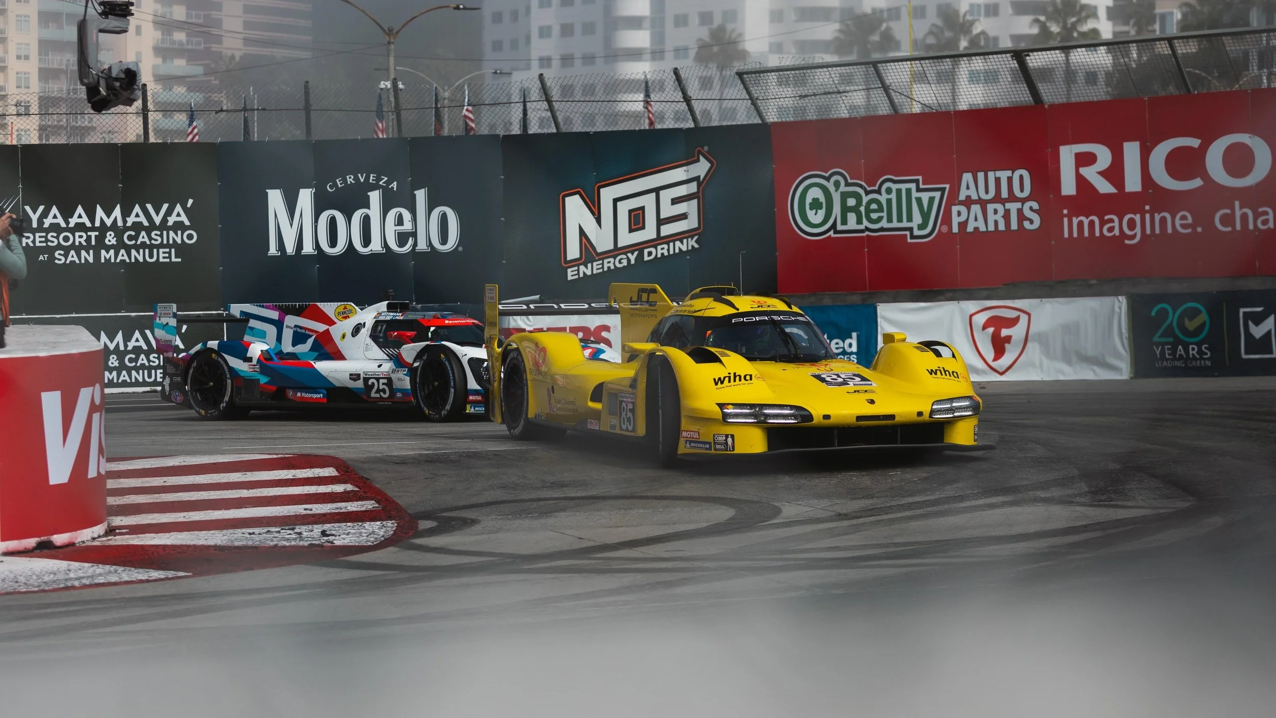 After thick fog in the early morning during the first free practice session, the Californian port city showed its best side for qualifying on the narrow street circuit: In bright sunshine and temperatures around 19 degrees Celsius, the drivers and teams found optimal conditions. Immediately after the qualifying of the top class GTP was released, the big time hunt began. While the entire competition repeatedly set new records, the two 496 kW (674 hp) Porsche 963 of the Porsche Penske Motorsport works team initially held back a bit.