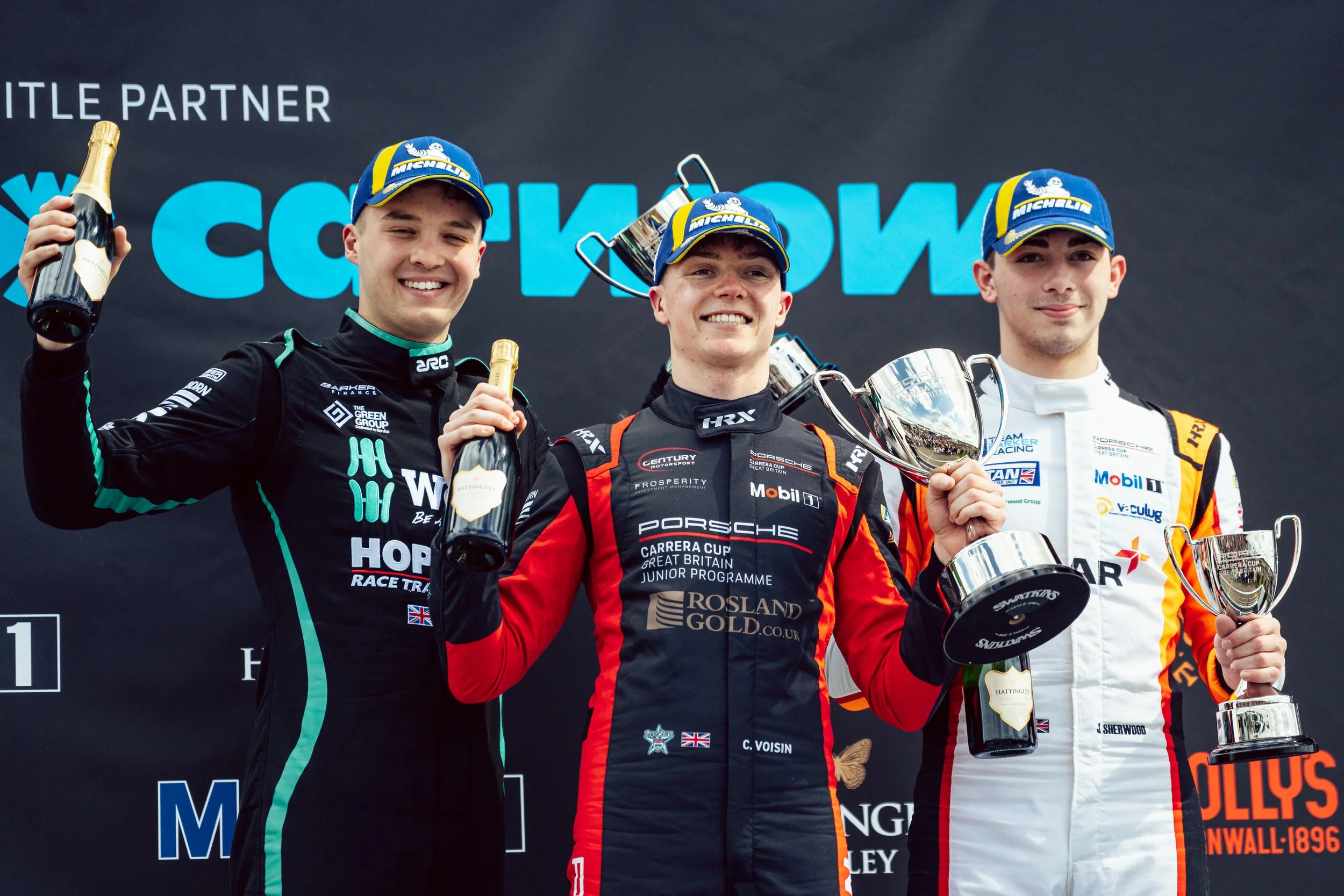 After a Safety Car period to allow for the recovery of two stricken cars, Jenkins and Voisin pulled clear. Meanwhile, Sherwood was forced to defend from an attacking Max Coates (Graves Motorsport) from North Yorkshire. On lap 17 Voisin made his move, snatching the lead from Jenkins with a confident and clean pass at Redgate. As Sherwood, Coates and Phelps ran line astern in third, fourth and fifth, Voisin managed to build an impressive gap. The new Junior took the checkered flag to secure victory on his Porsche racing debut, Jenkins was second with Sherwood in third.