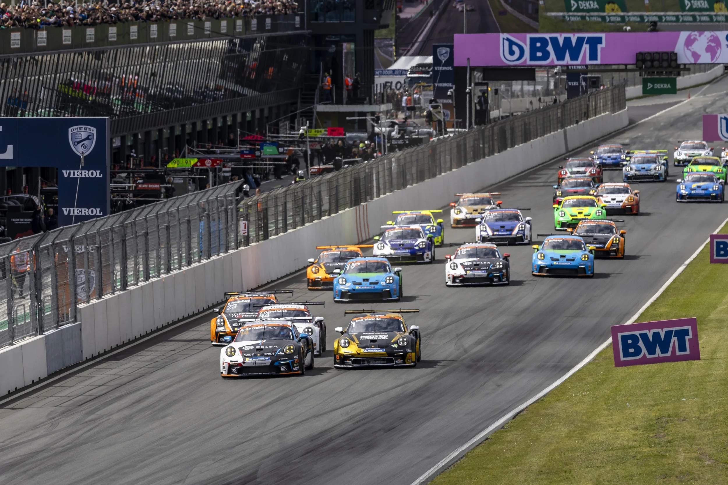 Two slips caused two full-course yellow phases shortly afterwards, in which the entire field circled the Formula 1 circuit in the dunes on the North Sea coast at 80 km/h. When the race was restarted, only two laps remained. While Larry ten Voorde drove unchallenged at the front to his fifth Carrera Cup victory at Zandvoort, Theo Oeverhaus and Harry King duelled for second place. "I misbraked after the restart," Oeverhaus explained why he lost in this duel. "But I'm on the podium of the overall standings for the first time, I'm more than satisfied with that," summed up the Osnabrück native.