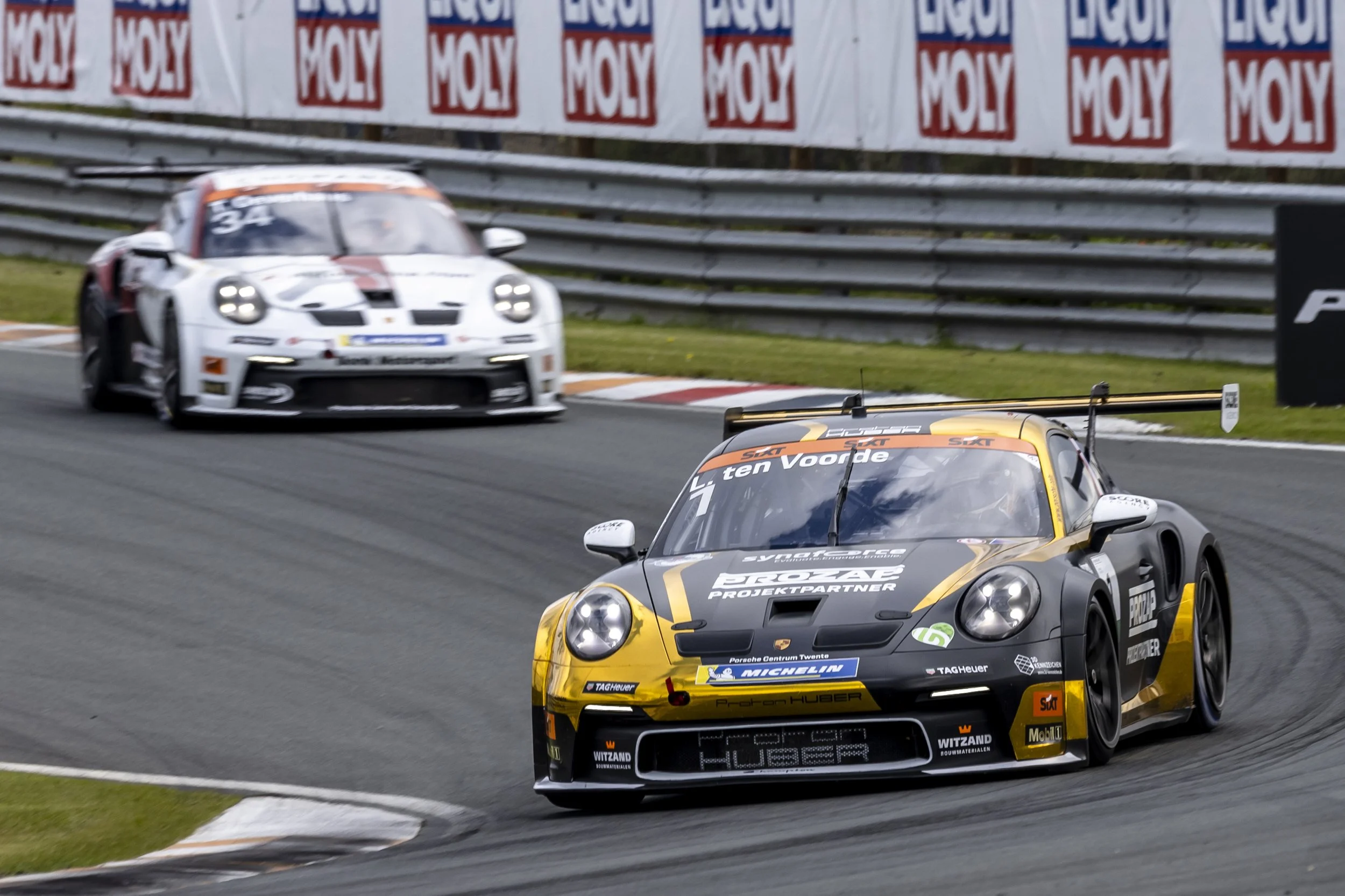 Victory at his home race was a matter of honour for him: reigning champion Larry ten Voorde won the fifth race of the Porsche Sixt Carrera Cup Deutschland season at Zandvoort. The Dutchman, who drives for Proton Huber Competition, thus reduced his gap to championship leader Harry King to just two points. The Briton crossed the finish line in second place after 16 laps in the Porsche 911 GT3 Cup fielded by Allied-Racing. The remaining place on the podium was secured by Theo Oeverhaus from Osnabrück from the Bonk Motorsport team.