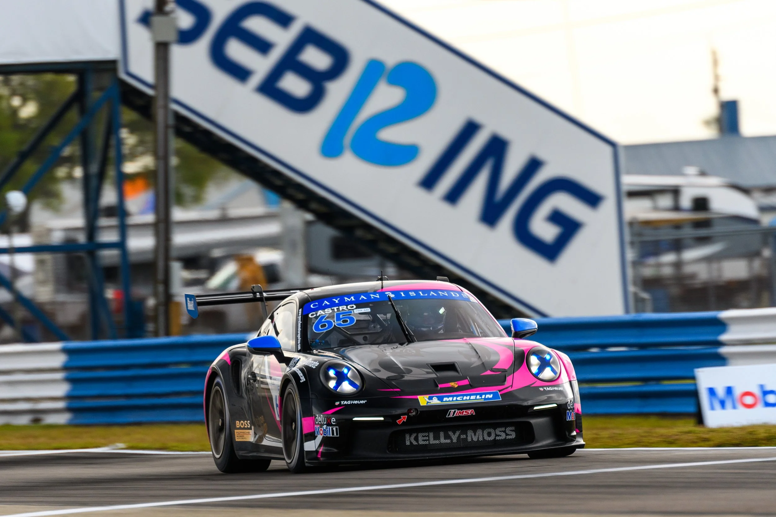 Kelly-Moss Road and Race pilot Kay van Berlo made it a clean sweep of sessions on Wednesday at Sebring International Raceway as he topped both practice sessions and continued his form to take pole position with a lap of 2:03.330 in the new Porsche 911 GT3 Cup car ahead of the opeining rounds of the Porsche Carrera Cup North America.