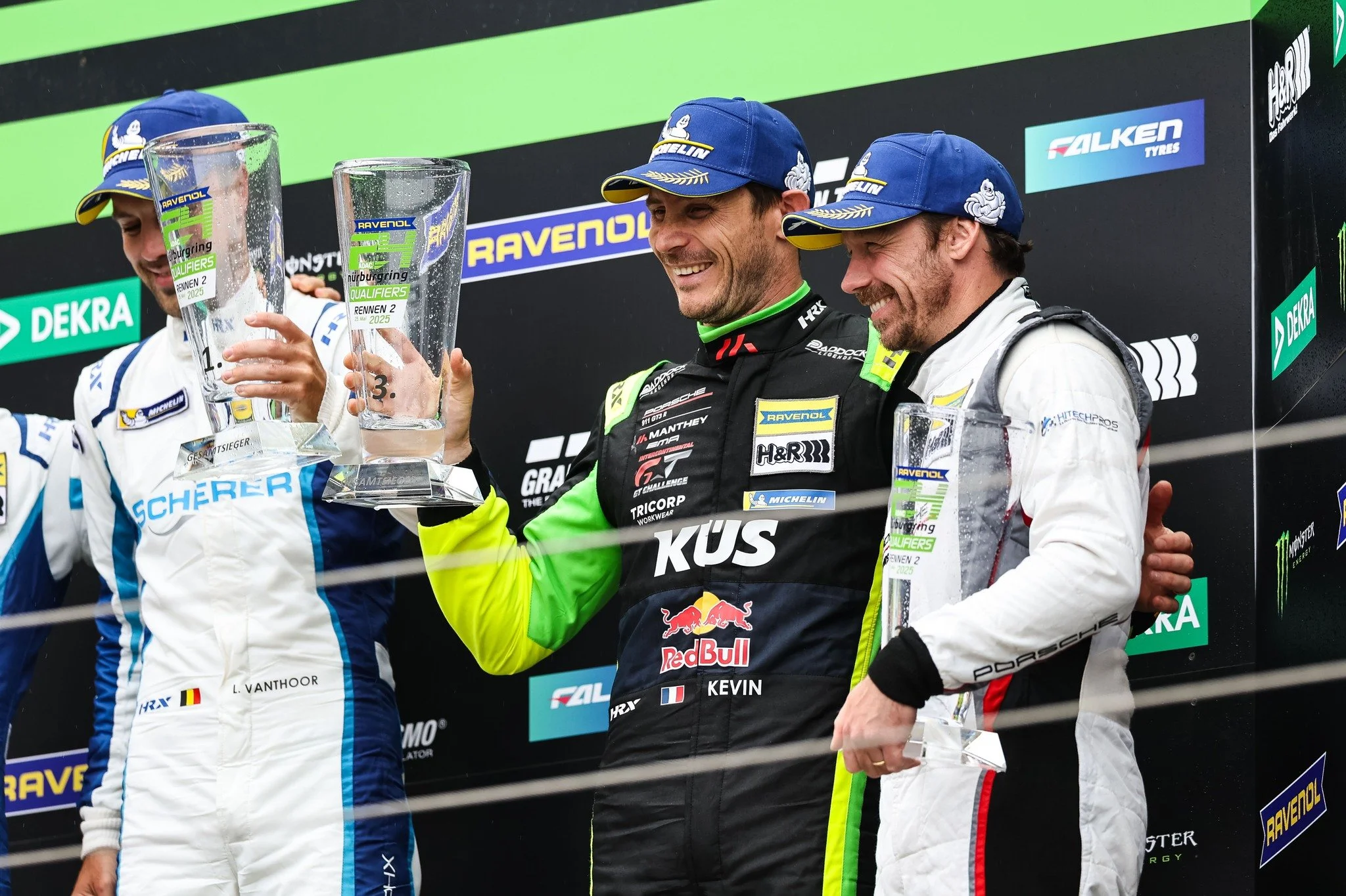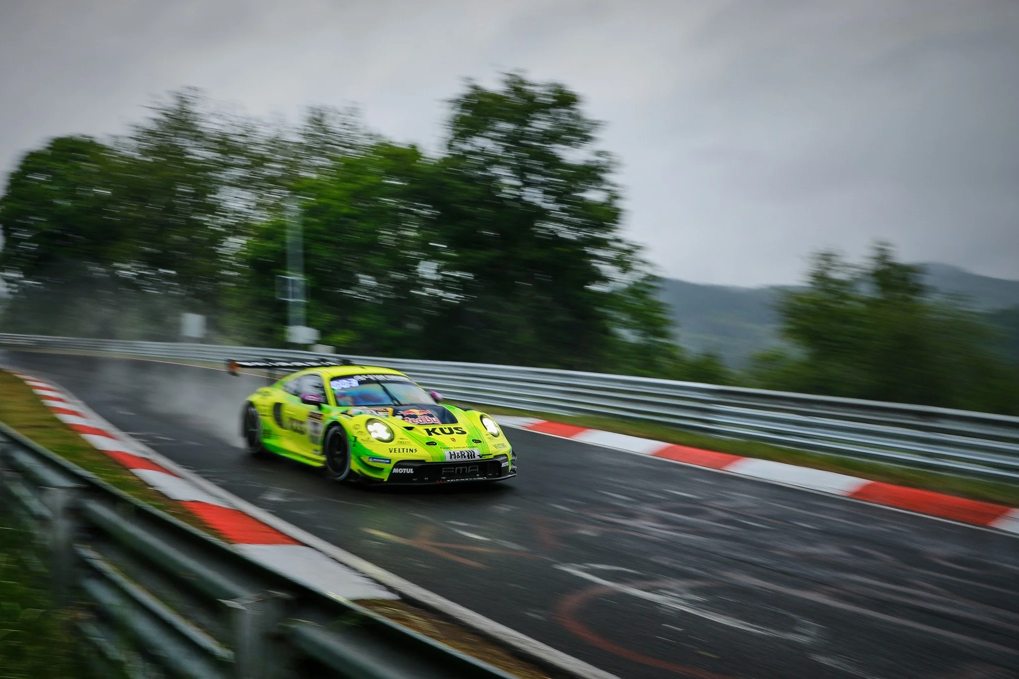 Starting from pole position, Manthey EMA began the first race of the weekend at the Nürburgring. Kévin Estre secured the top spot with a qualifying best time of 8:09.063 minutes in his first outing in the Porsche 911 GT3 R for the 2025 season. The four-hour race into darkness was characterised from the very start by heavy rain and standing water on the 25.378-kilometre combination of the Grand Prix circuit and the Nordschleife. The team initially had chosen the wrong rain tyres for these conditions and, after coming into the pits twice for a tyre change within the first six laps of the race, initially dropped back to fourth place. However, Estre managed to regain the lead after just under three hours in the Grello Porsche being the fastest driver on the track. He handed over to his fellow Frenchman Patrick Pilet for the remaining distance, who rejoined the race in second place in darkening and still wet conditions. He held this position right to the chequered flag, securing Manthey EMA's first podium finish of the weekend.
