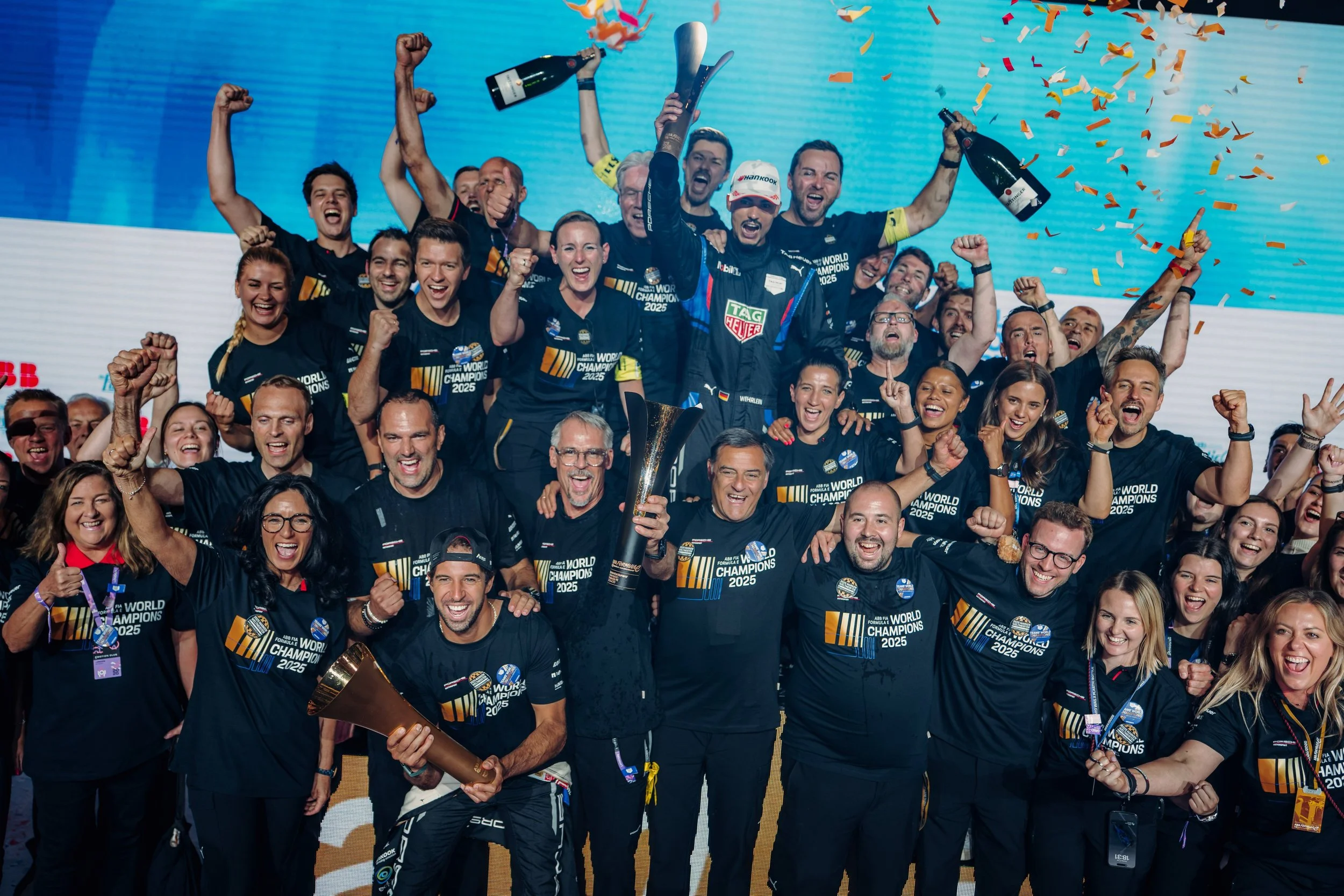 Porsche has won the Teams’ and Manufacturers’ ABB FIA Formula E World Championships. This completes the set of titles in Formula E after Pascal Wehrlein was crowned Drivers’ World Champion last season.