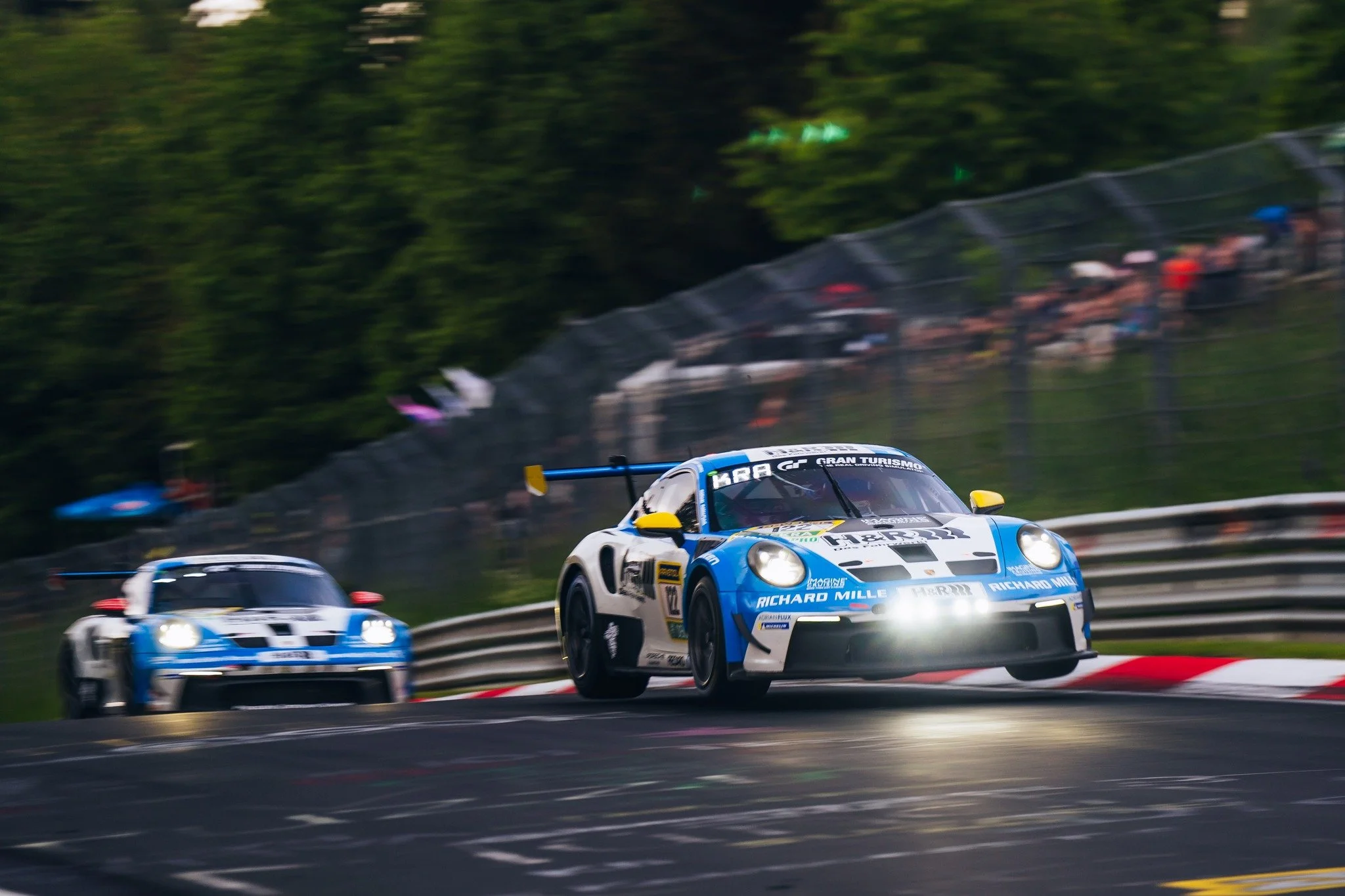 Drying conditions made tyre choice crucial at the start of the second race. The pole-sitters from Mühlner Motorsport (#921), Arne Hoffmeister, David Jahn and Tim Scheerbarth, headed for the pits at the end of the formation lap to switch to slicks. This strategic move enabled them to quickly make up for their lost first starting position and move up to the front of the class. In thrilling duels with the #901 car from SRS Team Sorg Rennsport, driven by Oleksii Kikireshko, Fabio Grosse and Patrik Grütter, the two Cup cars exchanged the class lead several times in the first hours of the race. For a long time, another race victory seemed certain, but due to contact with a vehicle from another class through no fault of their own, car number 921 had to pit shortly before the end for repairs to the radiator. KKrämer Racing (#929) with Karsten Krämer, Fidel Leib and Sascha Steinhardt ultimately secured the class victory, once again winning the AM classification. After technical problems, Kikireshko, Grosse and Grütter (#901) finished the race in second place ahead of Robin Chrzanowski, Kersten Jodexnis and Richard-Sven Jodexnis from the ClickversicherungTeam (#919).